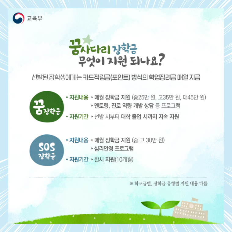 꿈사다리 장학금 무엇이 지원되나요?