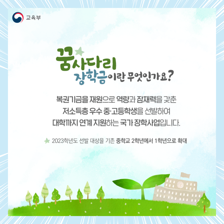2023학년도 꿈사다리 장학금 선발대상 : 중학교 1학년부터~