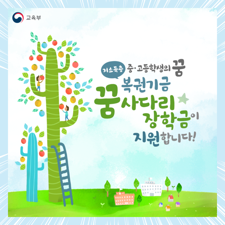 저소득 중/고등학교의 꿈을 복권기금 꿈사다리 장학금이 지원한대요.